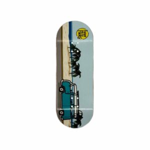 1 Blue wooden fingerboard deck with engraved FingerFlicks logo.